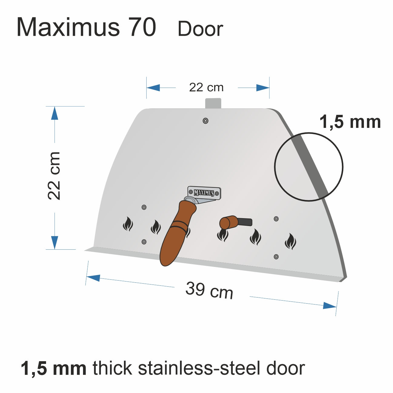 Porte de four MAXIMUS 70 PRO en acier inoxydable 304 brossé avec fenêtre