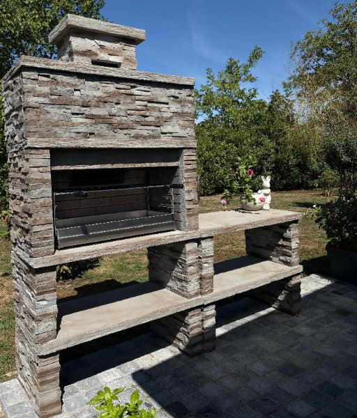The AV275F barbecue was designed for those seeking a complete and aesthetically pleasing solution for their outdoor kitchen. Made from high-quality reconstituted stone , it combines robustness , durability , and natural style , blending harmoniously into gardens, terraces, and summer kitchens.