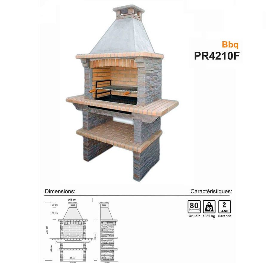 Le Barbecue en Pierre PR4210F associe la beauté intemporelle de la pierre naturelle à la performance d’un barbecue traditionnel. Fabriqué avec soin, il est conçu pour offrir une cuisson authentique au bois ou au charbon, garantissant des grillades savoureuses et parfaitement cuites.