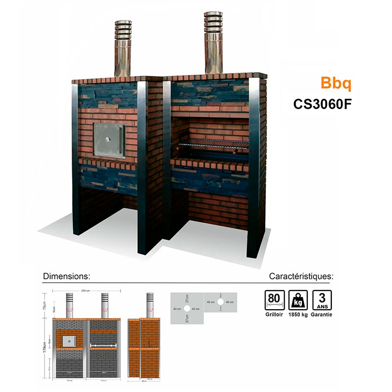 Barbecue en Pierre et Briques avec Four CS3060F – Cuisine extérieure complète et traditionnelle
