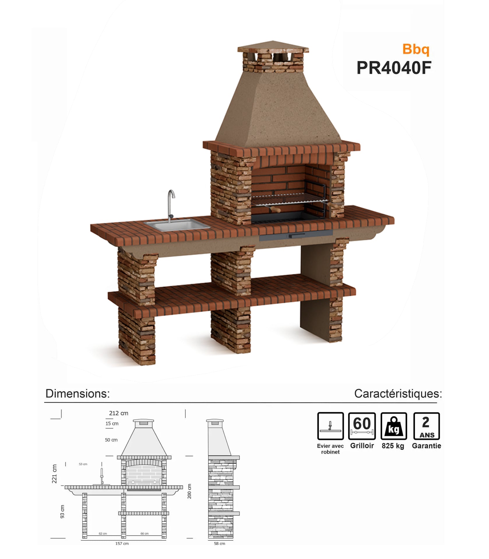 Le Barbecue PR4040F est la solution idéale pour ceux qui recherchent un barbecue compact, pratique et solide, parfait pour les petits espaces ou pour compléter une cuisine extérieure. Construit en pierre naturelle de haute qualité, il assure une résistance exceptionnelle à la chaleur et aux intempéries, garantissant une longévité remarquable même avec une utilisation régulière.