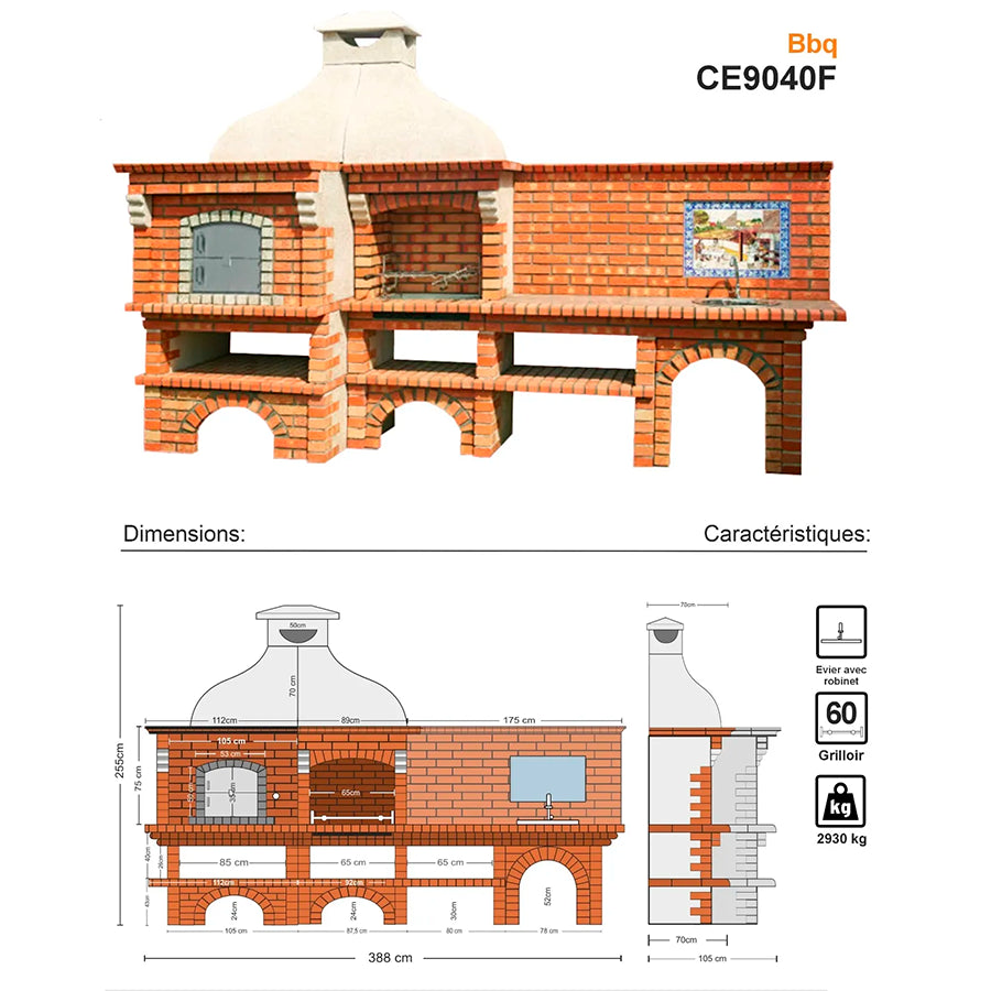 Barbecue en Brique avec Four et Évier CE9040F – Cuisine extérieure complète et élégante