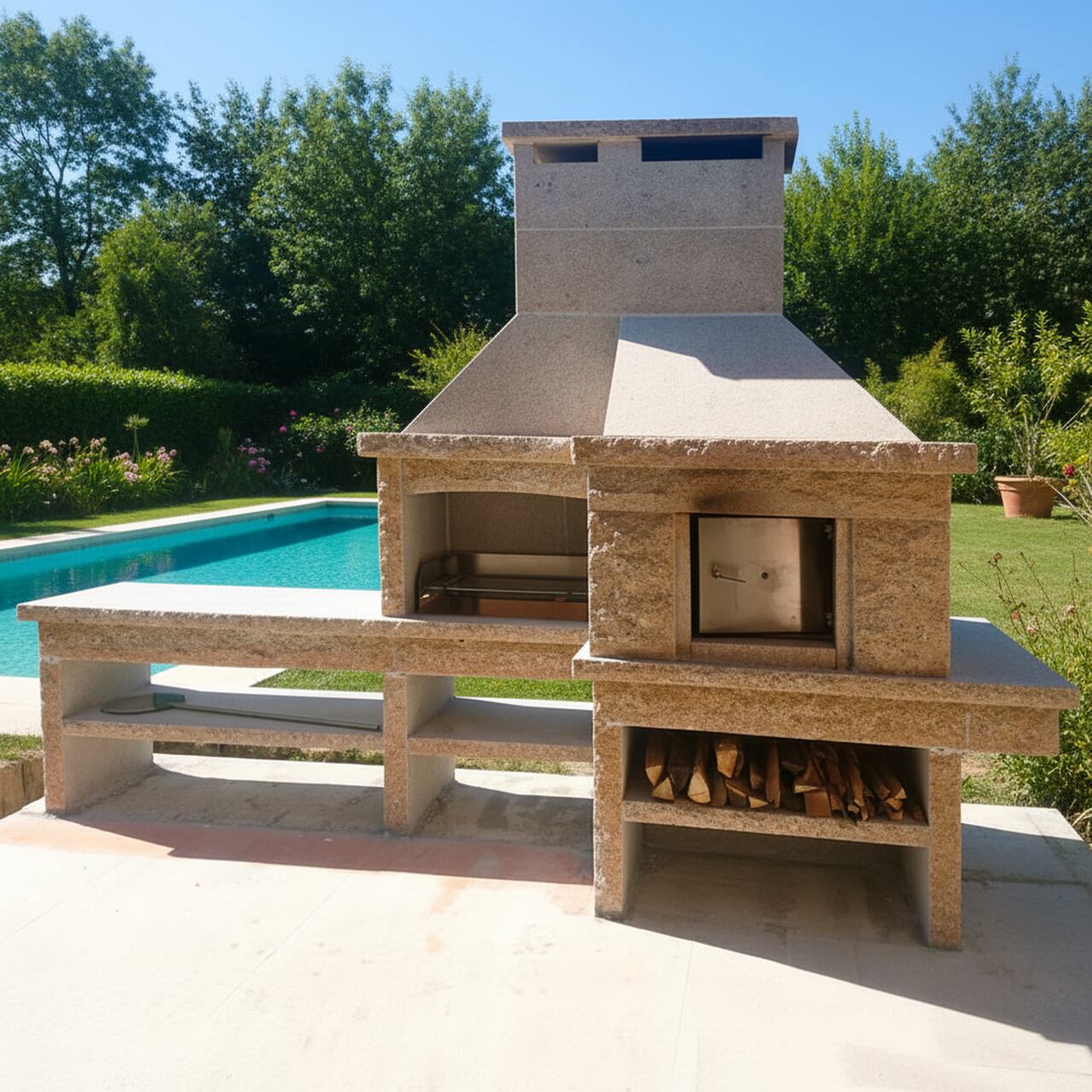 Le Barbecue GR66F est la solution idéale pour transformer votre jardin ou terrasse en une véritable cuisine extérieure complète. Fabriqué en granit portugais de qualité supérieure, il allie solidité exceptionnelle et résistance aux hautes températures, garantissant une durabilité inégalée même avec une utilisation régulière et intensive.