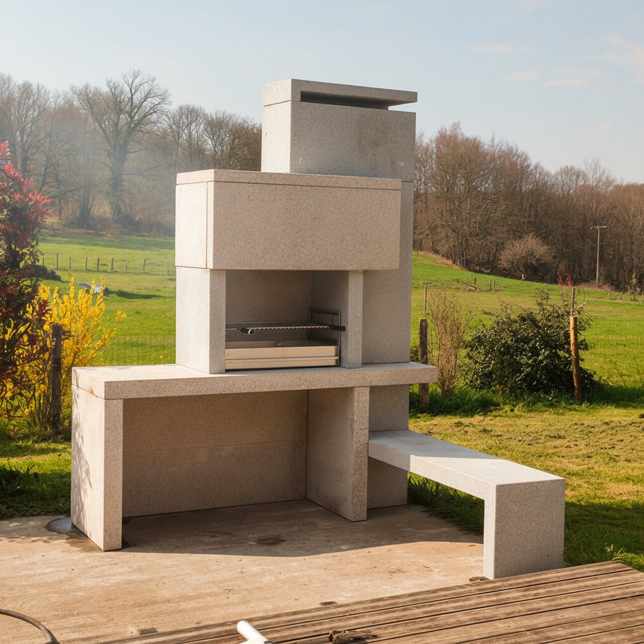 Barbecue en briques installé sur une terrasse extérieure