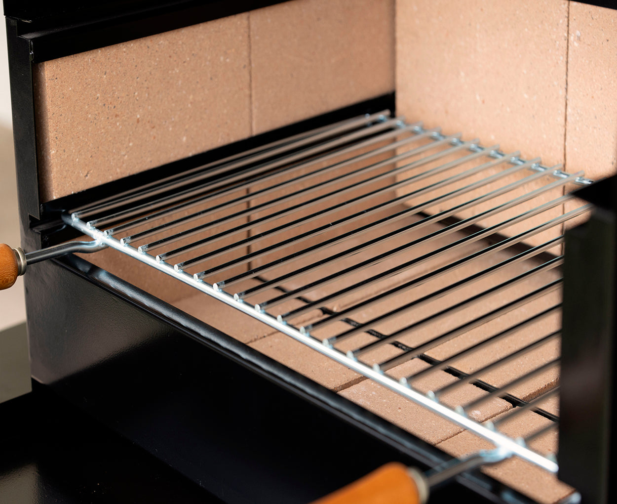 Le Barbecue en métal et en briques AC88F est conçu pour offrir une expérience de cuisson en plein air pratique et conviviale. Sa structure métallique avec peinture haute température dans la zone de combustion, associée à une grille en acier galvanisé et des poignées en bois, garantit robustesse, sécurité et facilité d’utilisation.