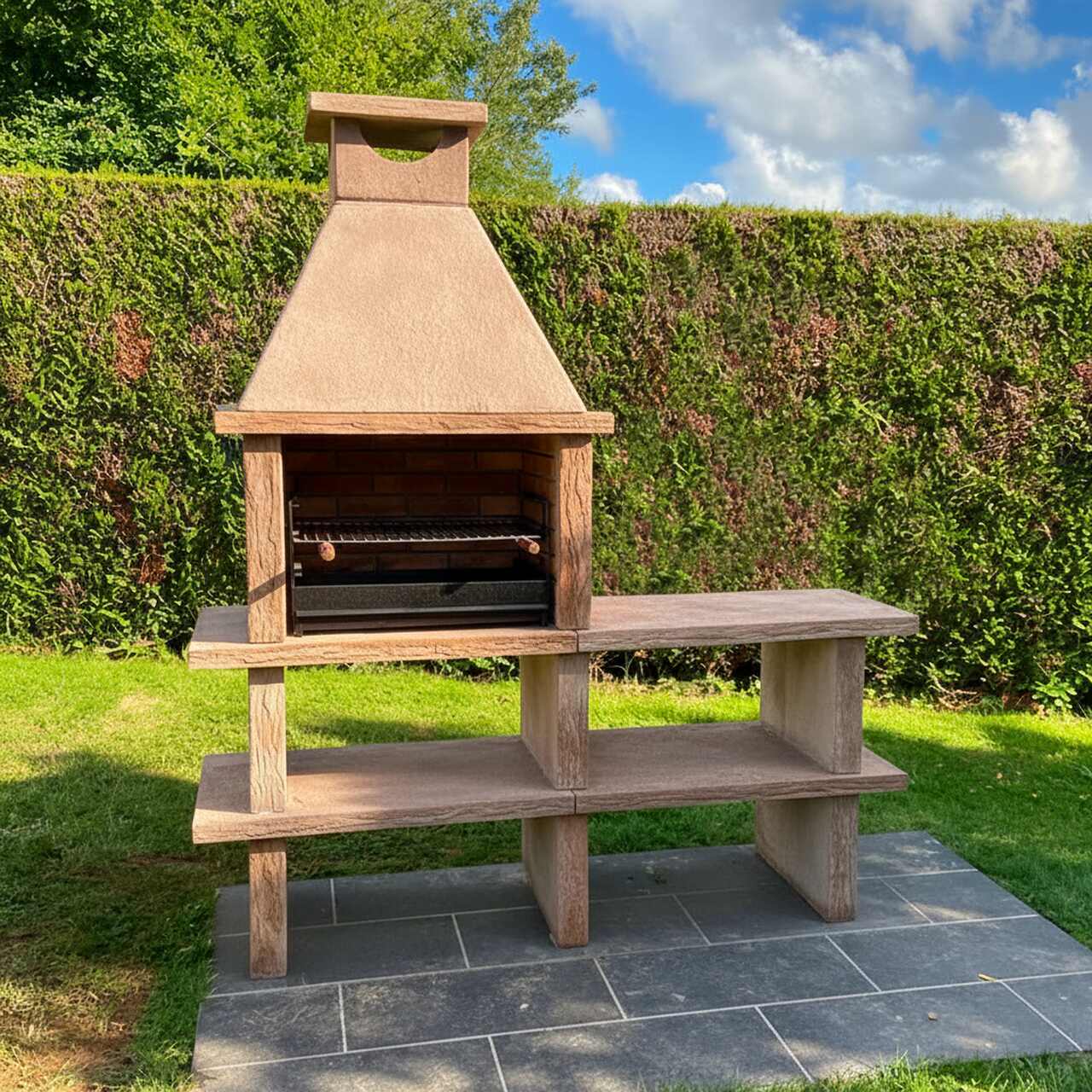 Le Barbecue en Pierre avec Plan de Travail AV140RF combine esthétique, solidité et praticité, transformant vos repas en extérieur en moments conviviaux et gourmands tout en ajoutant une touche élégante et fonctionnelle à votre jardin.