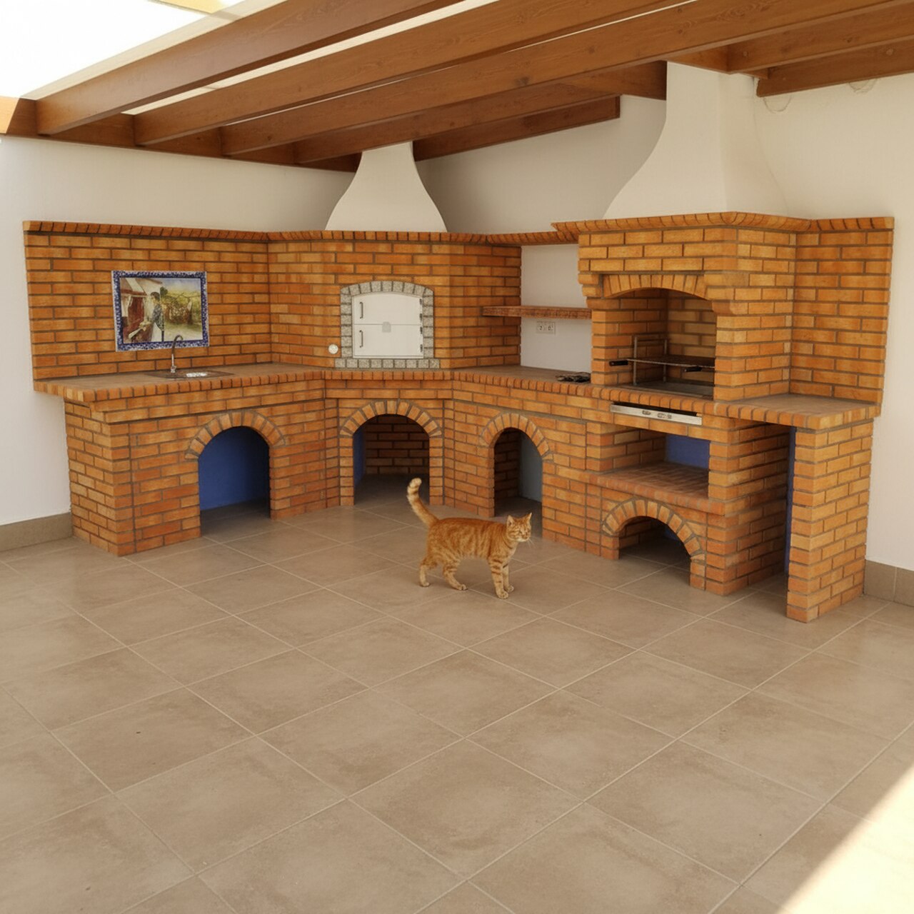 • Barbecue, four à bois et évier intégrés dans une seule structure