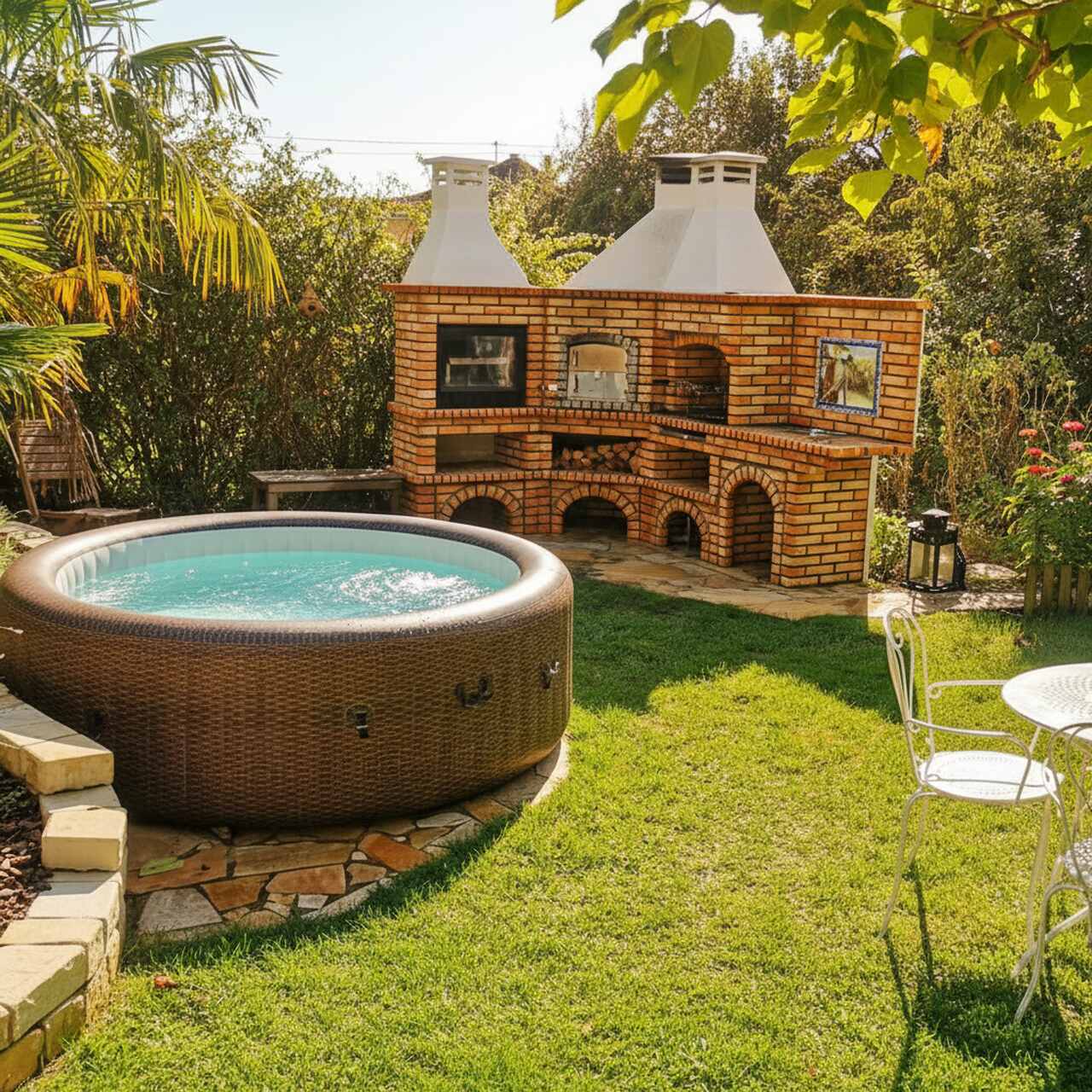 - Superbe ensemble barbecue en brique avec four à bois intégré