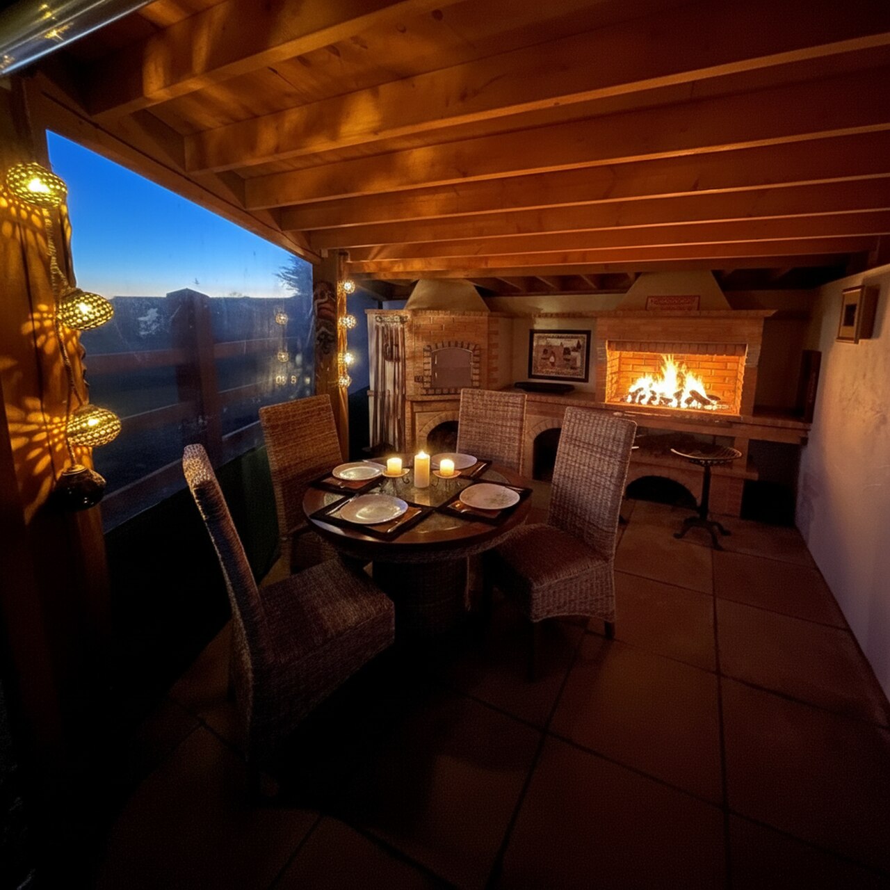 Barbecue en briques installé sur une terrasse extérieure