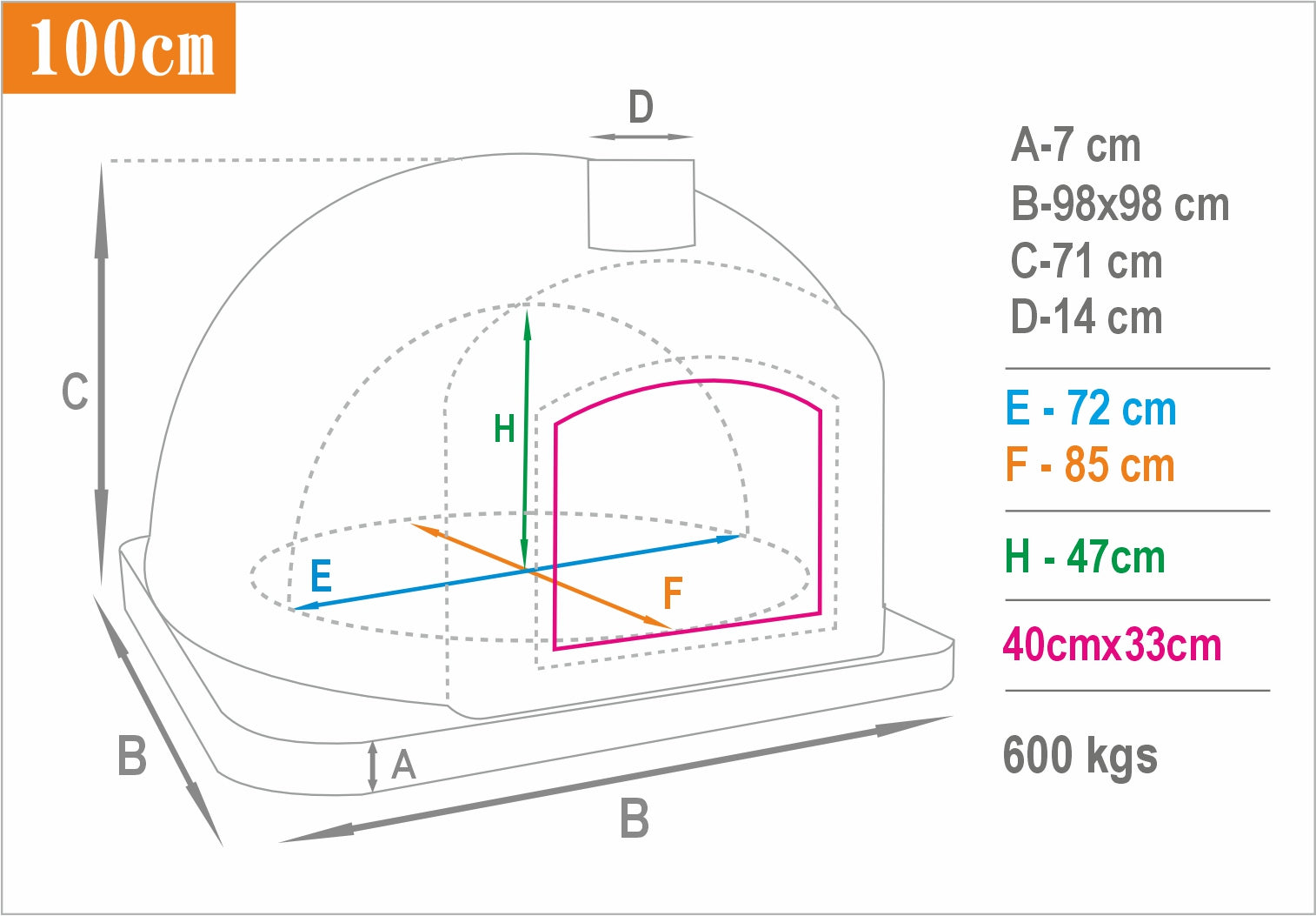 Four à bois en brique 100x100 cm avec doublure en granit naturel : Construction solide et spacieuse, assurant une excellente inertie thermique et une cuisson homogène pour tous types de plats.