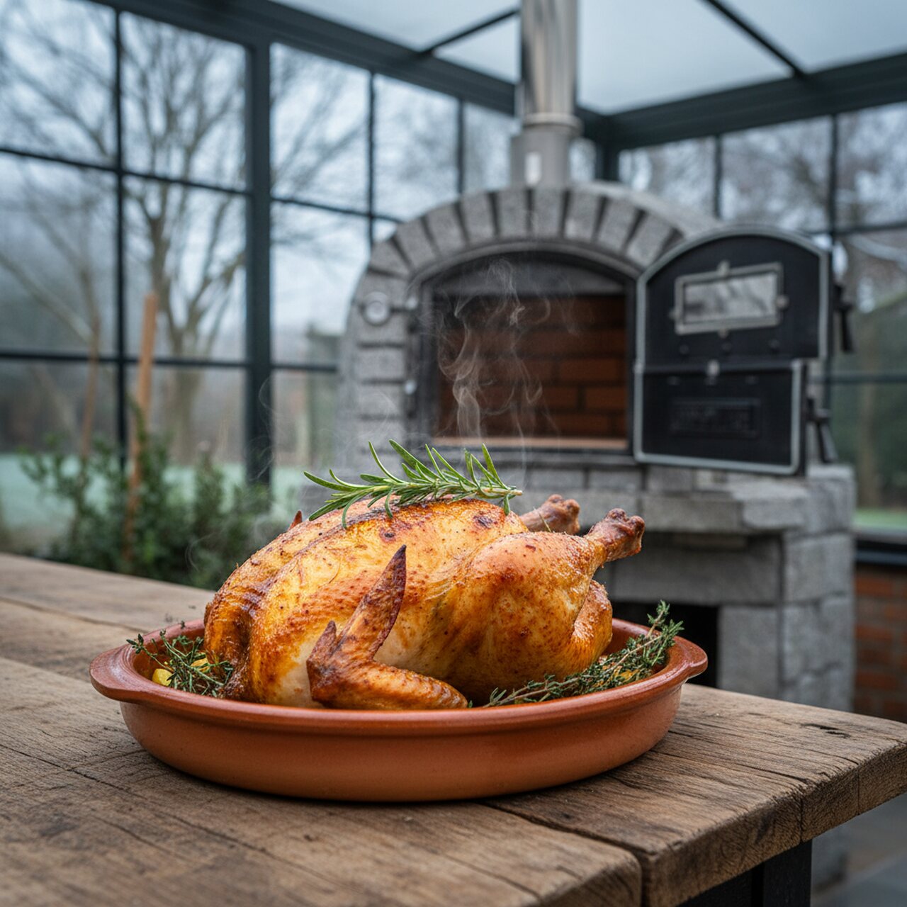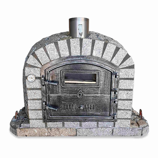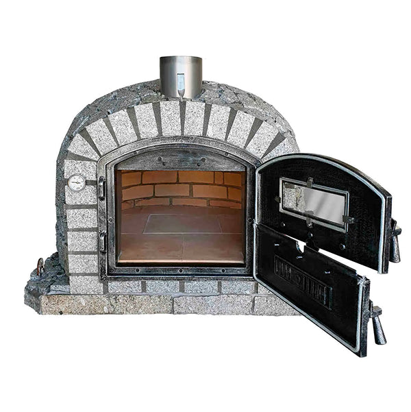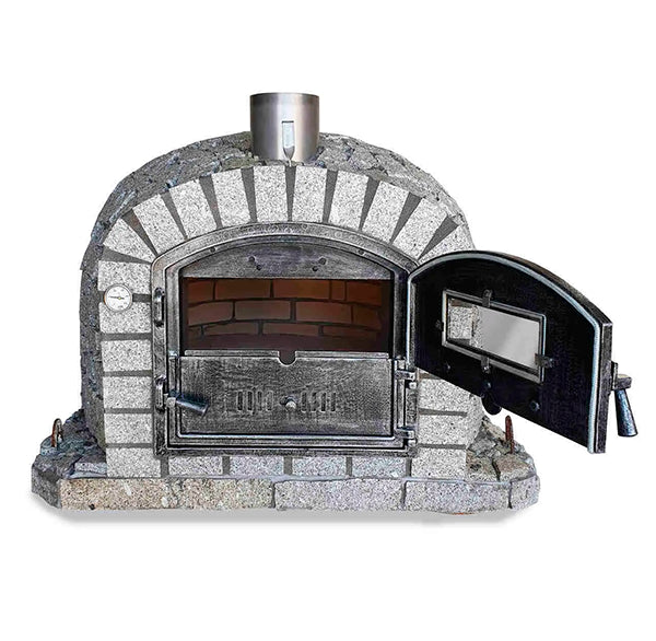 Porte en aluminium-verre avec cheminée en acier inoxydable : Matériau d’excellence pour les fours extérieurs, garantissant durabilité et haute efficacité thermique. Le matériau robuste ne rouille pas, conserve la chaleur de manière stable et résiste parfaitement aux conditions extérieures. La fenêtre intégrée permet de suivre la cuisson sans ouvrir la porte, alliant design moderne et performances de niveau professionnel.