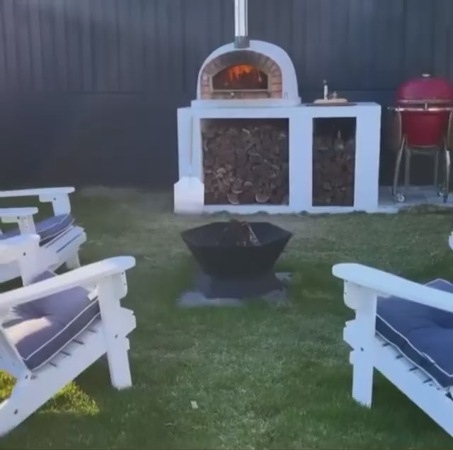 - Four à bois en briques réfractaires : Dôme de couleur blanche, entièrement construit en briques réfractaires, assurant une excellente rétention de chaleur et une cuisson homogène.