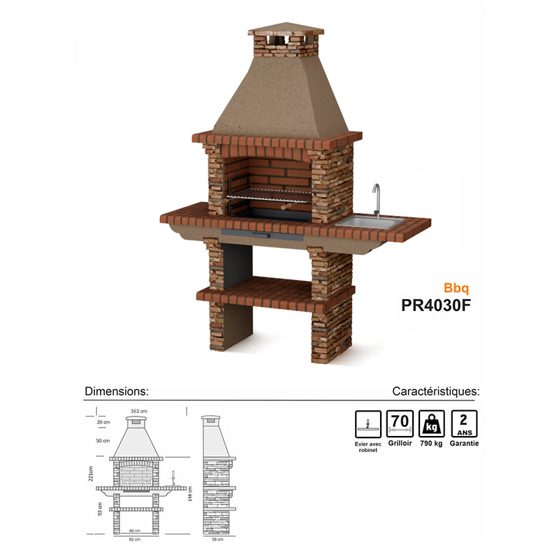 Le Barbecue PR4030F allie authenticité et durabilité grâce à sa construction en pierre reconstituée de haute qualité, offrant une résistance exceptionnelle à la chaleur et aux intempéries. Conçu pour durer, il est parfait pour ceux qui souhaitent un barbecue à la fois pratique, esthétique et solide pour leur jardin ou terrasse.