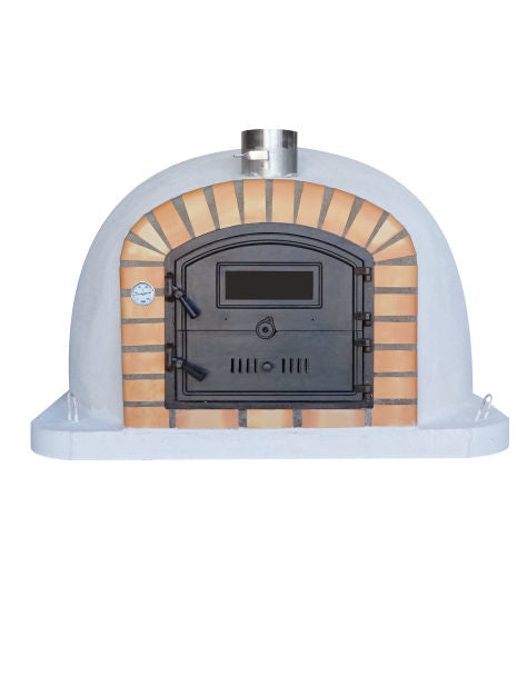 Cette porte en aluminium forgé avec sortie de cheminée intégrée est spécialement conçue pour s’adapter parfaitement aux fours à bois pour pain et pizza des modèles LISBOA, FAMOSI, LUIGI, BRAGA et LISBOA PIETRA.